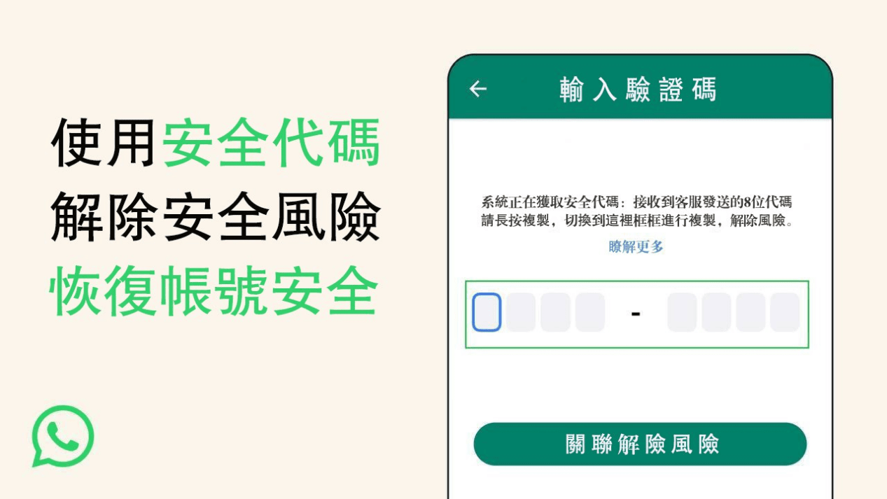 這裡是WhatsApp安全驗證中心,它能幫助用戶解決賬號風險/異常等問題,提供更安全的防護,在WhatsApp隱私和安全是我們的DNA,我們致力於為全球20億用戶維持最高的安全標準。